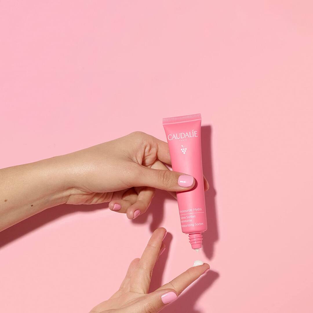 Caudalie Vinosource-Hydra Moisturizing Sorbet is a lightweight, soothing moisturizer enriched with organic grape water to provide instant and long-lasting hydration for all skin types. Its gentle formula calms redness, restores moisture, and leaves skin soft, plump, and radiant.